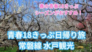 日帰り旅 【常磐線】偕楽園・弘道館・水戸城跡、観光・散策メインの日帰り旅! ~青春18きっぷ おすすめ日帰り旅10~ 青春18きっぷでおすすめの日帰り旅を紹介するシリーズ、常磐線の水戸駅周辺の観光・散策メインの日帰り旅をご紹介します。水戸駅周辺には、日本三大庭園の「偕楽園」、日本最大規模の藩校「弘道館」、復元が進む「水戸城跡」、水戸のオアシス「千波湖」など、観光や散策に適したスポットがたくさんあります。乗車時間も適度で、観光を楽しむ時間も十分にあります。 2023.03.13 日帰り旅青春18きっぷ