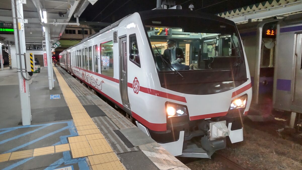 18時55分に花巻駅に到着。進行方向が変わるため、13分の停車時間があります。数少ない2号車の乗客も、新花巻駅とこの花巻駅で大半が下車してしまい、残るは5~6名ほどに。