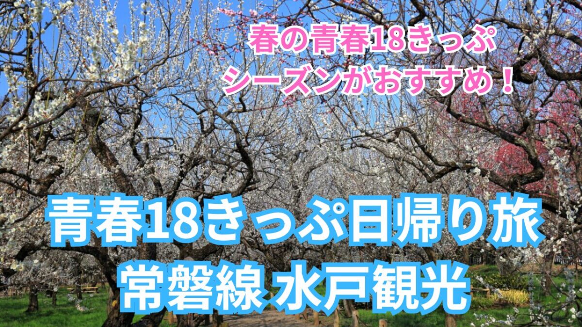 青春18きっぷでおすすめの日帰り旅を紹介するシリーズ。今回は常磐線の水戸駅周辺の観光・散策メインの日帰り旅をご紹介します。水戸駅周辺には、日本三大庭園の「偕楽園」、日本最大規模の藩校「弘道館」、復元が進む「水戸城跡」、水戸のオアシス「千波湖」など、観光や散策に適したスポットがたくさんあります。青春18きっぷで都心から片道2時間。乗車時間も適度で、観光を楽しむ時間も十分にあります。