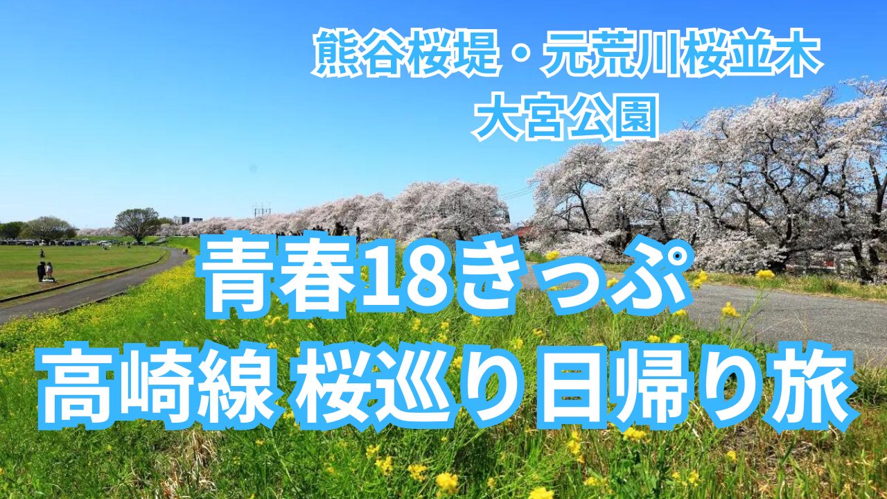 春の青春18きっぷを利用して、高崎線沿線の桜の名所である熊谷桜堤(熊谷駅)、元荒川桜並木(吹上駅)、大宮公園(大宮駅)を巡ってきました。それぞれ雰囲気の違う桜の名所でお花見を楽しむことができました。この記事では、今回巡ってきた桜の名所の様子をお届けします。